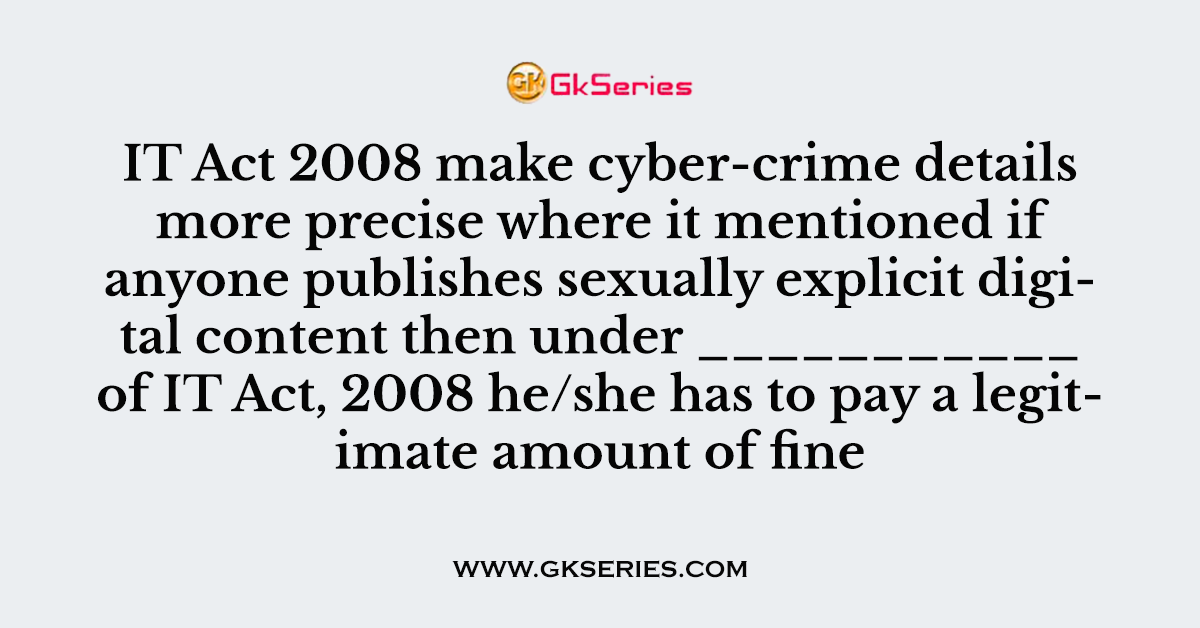 Q. IT Act 2008 make cyber-crime details more precise where it mentioned if anyone publishes sexually explicit digital content then under ___________ of IT Act, 2008 he/she has to pay a legitimate amount of fine.
