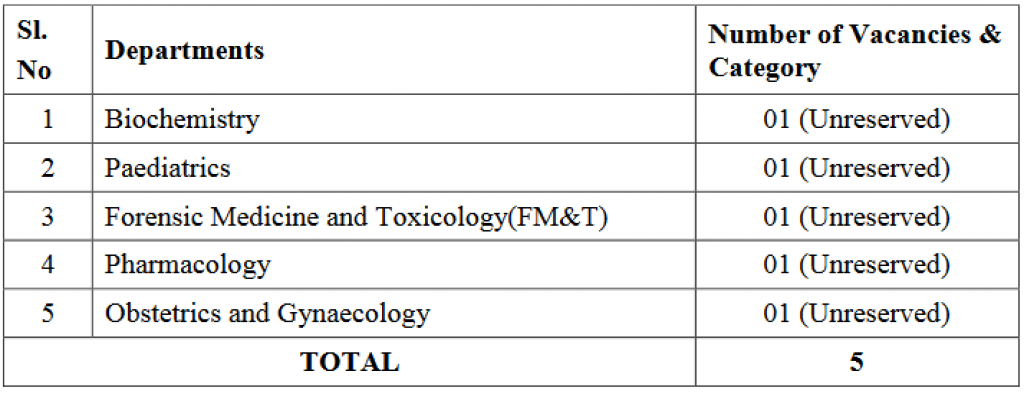 Qualification: A MCI  recognized  postgraduate  Medical  degree  viz.  MD/MS/DNB in  the respective discipline from a recognized University/Institute.