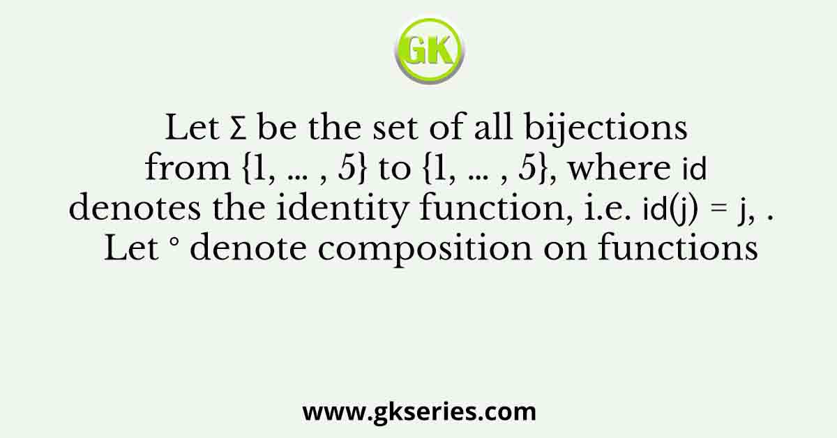 Let Ξ£ be the set of all bijections from {1, β¦ , 5} to {1, β¦ , 5}, where ππ denotes the identity function, i.e. ππ(π) = π, βπ.Β Β Let β denote composition on functions