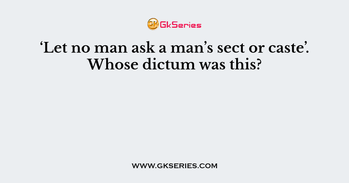 Q. ‘Let no man ask a man’s sect or caste’. Whose dictum was this?