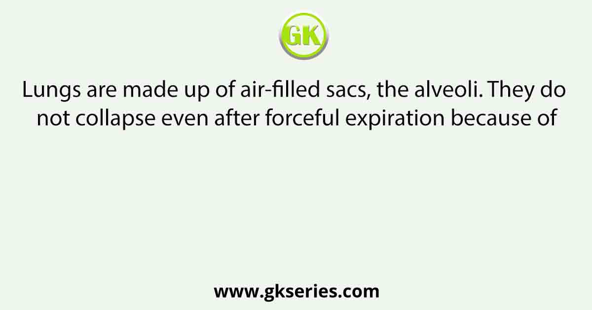 Lungs are made up of air-filled sacs, the alveoli. They do not collapse even after forceful expiration because of