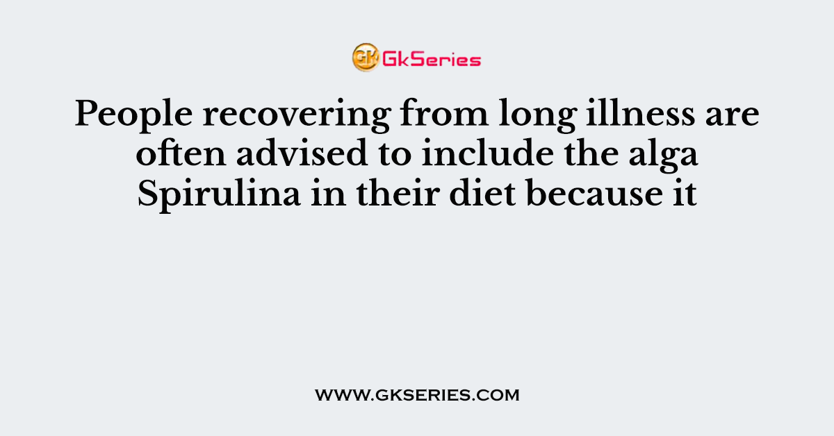 Q. People recovering from long illness are often advised to include the alga Spirulina in their diet because it