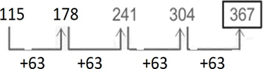 | Question | Select the number from among the given options that can replace the question mark (?) in the following series. 115, 178, 241, 304, ? | |