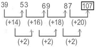| Question | Select the number from among the given options that can replace the question mark (?) in the following series. 39, 53, 69, 87, ? | |