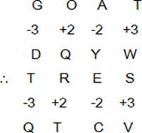 | Question | Select the option that is related to the third letter – cluster in the same way as the second letter – cluster is related to the first letter – cluster. GOAT : DQYW : : TRES : ? | |