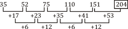 | Question | Select the option that will fill in the blank and complete the given series. 35, 52, 75, 110, 151, | |
