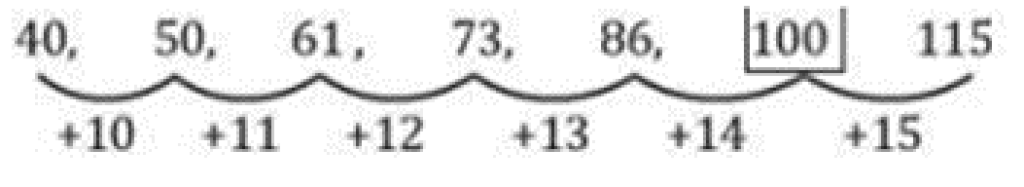 Select the option that will replace the question mark to complete the given series. 40, 50, 61, 73, 86, ?, 115