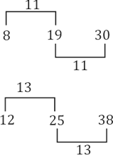 | Question | Select the set of numbers that is similar to the following set. {8, 19, 30} | |