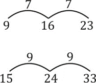 | Question | Select the set of numbers that is similar to the following set. {9, 16, 23} | |