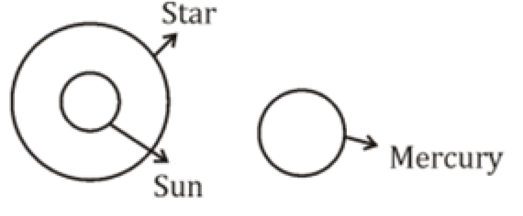 Select the Venn diagram that best represents the relationship between the following classes. Star, Sun, Mercury