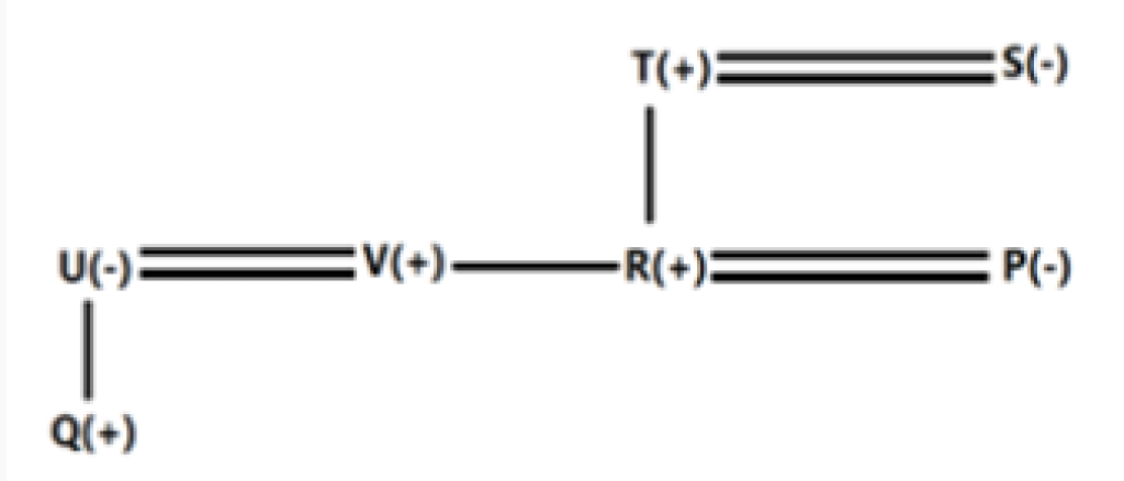 Seven persons P, Q, R, S, T, U & V belong to a family consisting of three generations and three married couples. Q is only child of U and V. P is married to R. R and V are sons of T. Q and T are male members of the family. T is married.