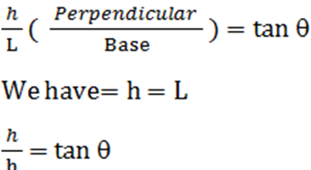 tan θ = 1 So, when tan θ is equal to 1 the angle will be 45° (Option A)
