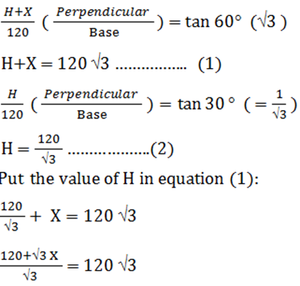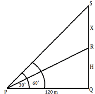 Home » quantitative aptitude » The angle of elevation of the top of an unfinished building at point P which is 120 m away from its base is 30°. If the angle of elevation of the finished building at the same point would be 60°, find the height of the remaining part of the building.