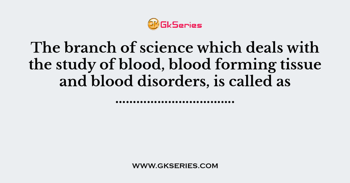 Q. The branch of science which deals with the study of blood, blood forming tissue and blood disorders, is called as …………………………….