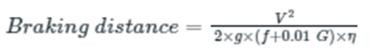 Where V = Speed of the vehicle before the brake is applied