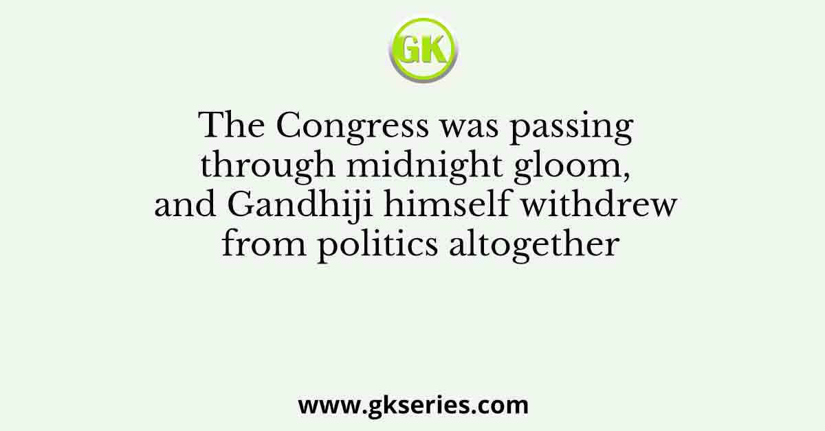The Congress was passing through midnight gloom, and Gandhiji himself withdrew from politics altogether