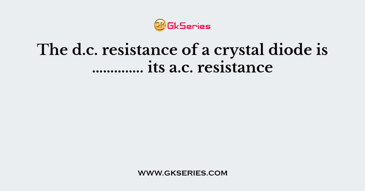 Q. The d.c. resistance of a crystal diode is ………….. its a.c. resistance
