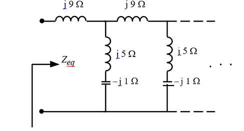 Q. The equivalent impedance Zeq for the infinite ladder circuit shown in the figure is