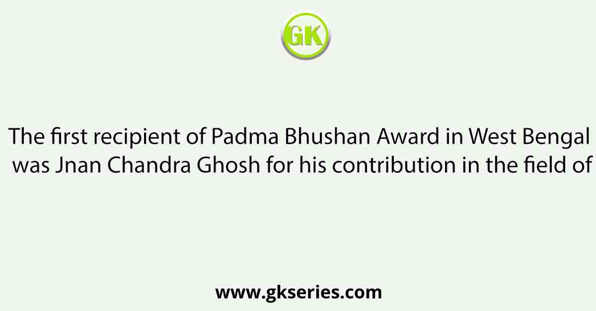 | Question | The first recipient of Padma Bhushan Award in West Bengal was Jnan Chandra Ghosh for his contribution in the field of | |