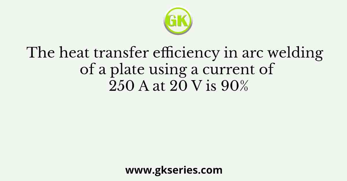 The heat transfer efficiency in arc welding of a plate using a current of 250 A at 20 V is 90%