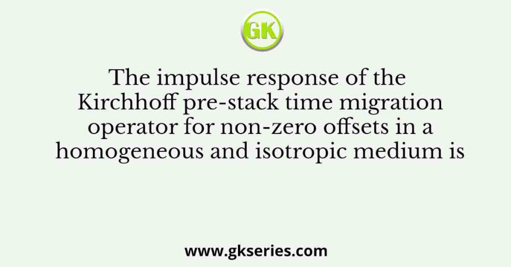 Q. The impulse response of the Kirchhoff pre-stack time migration operator for non-zero offsets in a homogeneous and isotropic medium is