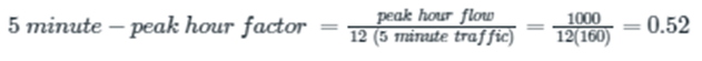 The five-minute peak hour factor for 5 minutes is defined as the ratio of peak hourly traffic for 5 minutes to the maximum possible traffic for minutes.