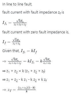 Q. The positive, negative and zero sequence impedances of a three phase generator are ๐1, ๐2 and ๐0 respectively. For a line-to-line fault with fault impedance ๐๐, the fault current is ๐ผ๐1 = ๐๐ผ๐, where ๐ผ๐ is the fault current with zero fault impedance. The relation between ๐๐ and ๐ is