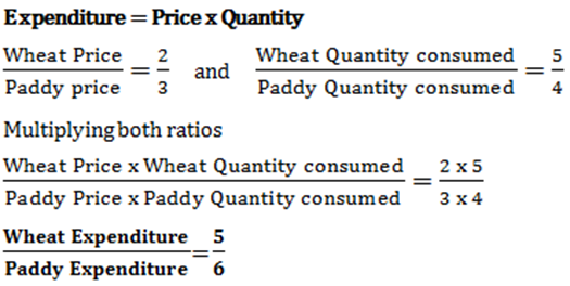 Home » quantitative aptitude » The ratio of market prices of wheat and paddy is 2:3 and the ratio of quantities consumed in a family is 5:4. Find the ratio of expenditure of wheat and paddy.