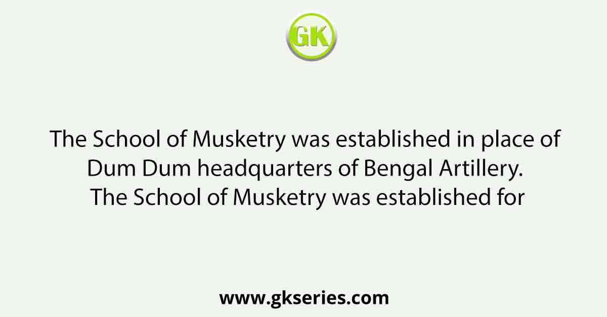 The School of Musketry was established in place of Dum Dum headquarters of Bengal Artillery. The School of Musketry was established for