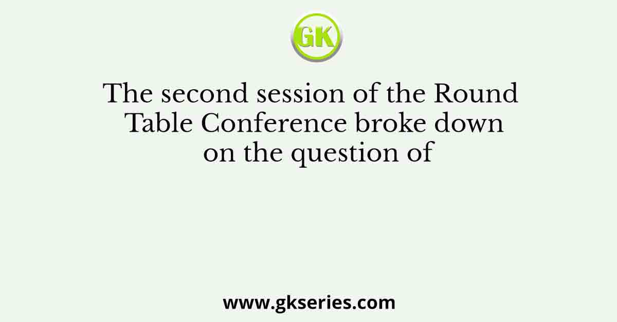 The second session of the Round Table Conference, held in 1931 in London, broke down primarily due to the issue of separate electorates for the minorities. Separate electorates were a system proposed to give certain religious or minority communities separate representation in the legislative bodies.