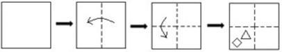 The sequence of folding a piece of paper and the manner in which the folded paper has been cut is shown in the following figures. How would this paper look when unfolded?