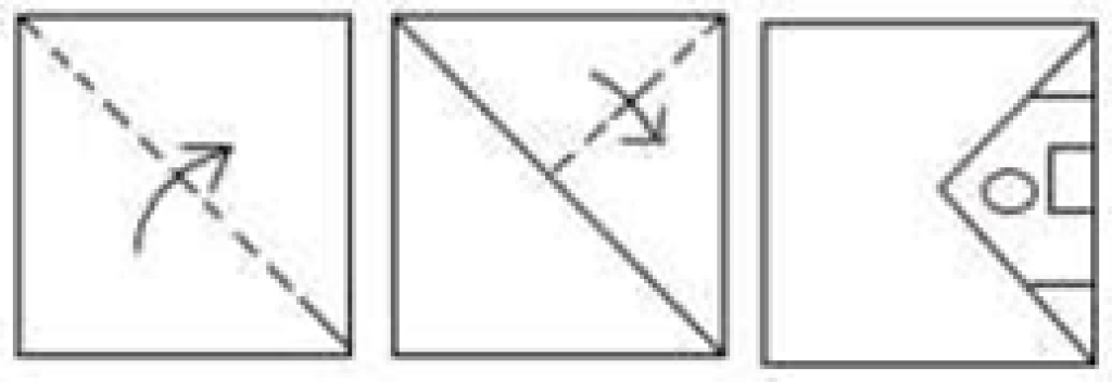 The sequence of folding a piece of paper and the manner in which the folded paper has been cut is shown in the following figures. How would this paper look when unfolded?