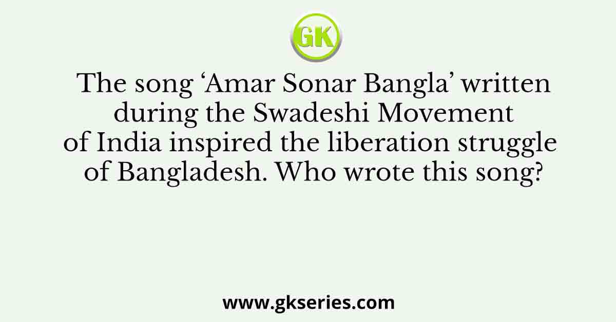 Q. The song ‘Amar Sonar Bangla’ written during the Swadeshi Movement of India inspired the liberation struggle of Bangladesh. Who wrote this song?