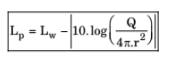 Putting values of Lw = 90, r = 10 m, Lp = 59,00 dB