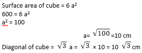 Home » quantitative aptitude » The surface area of a cube is 600 cm2. The length of its diagonal is Quantitative aptitude The surface area of a cube is 600 cm2. The length of its diagonal is July 27, 2023 55 Views Option 1 Option 2 Option 3 10 √ 3 cm Option 4 10 √ 2 cm Solution