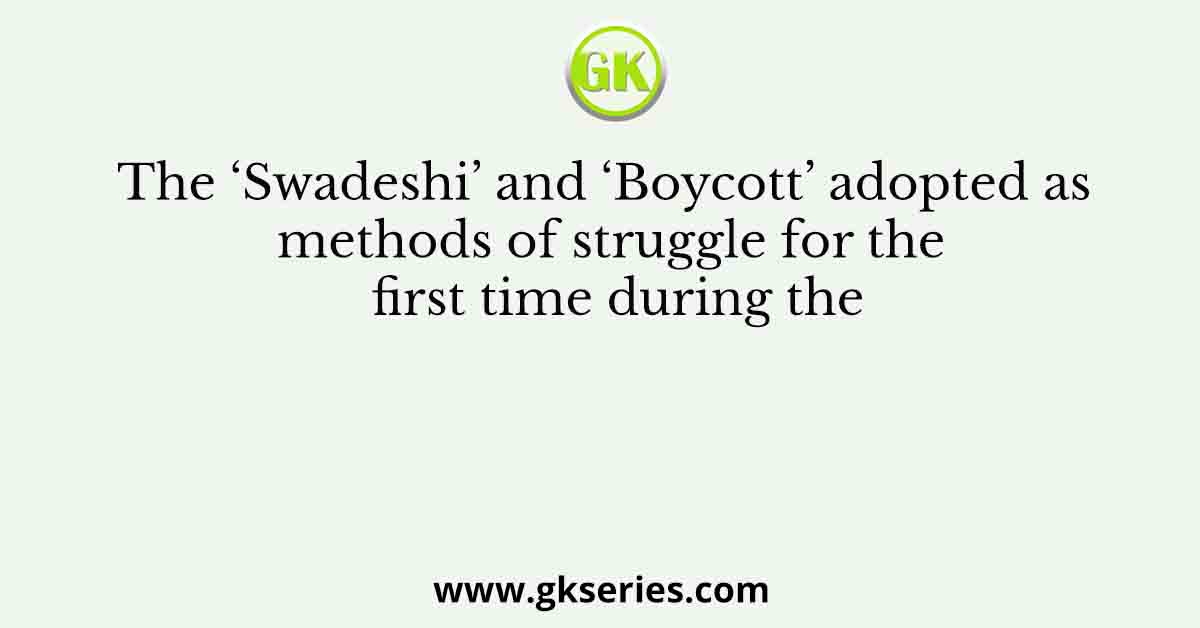Q. The ‘Swadeshi’ and ‘Boycott’ adopted as methods of struggle for the first time during the