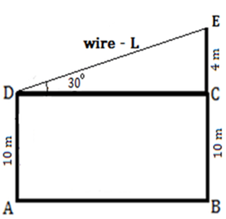 | Question | The tops of two poles are connected by a wire. The heights of the poles are 10 m and 14 m respectively. If the wire makes a 30° angle with the horizontal, find the length of the wire? | |