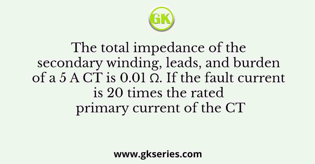 The total impedance of the secondary winding, leads, and burden of a 5 A CT is 0.01 Ω. If the fault current is 20 times the rated primary current of the CT