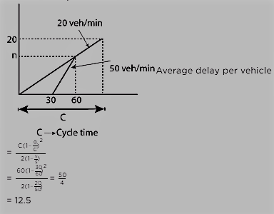 Q. The uniform arrival and uniform service rates observed on an approach road to a signalized intersection are 20 and 50 vehicles/minute, respectively. For this signal, the red time is 30 s, the effective green time is 30 s, and the cycle length is 60 s. Assuming that initially there are no vehicles in the queue, the average delay per vehicle using the approach road during a cycle length (in s, round off to 2 decimal places) is