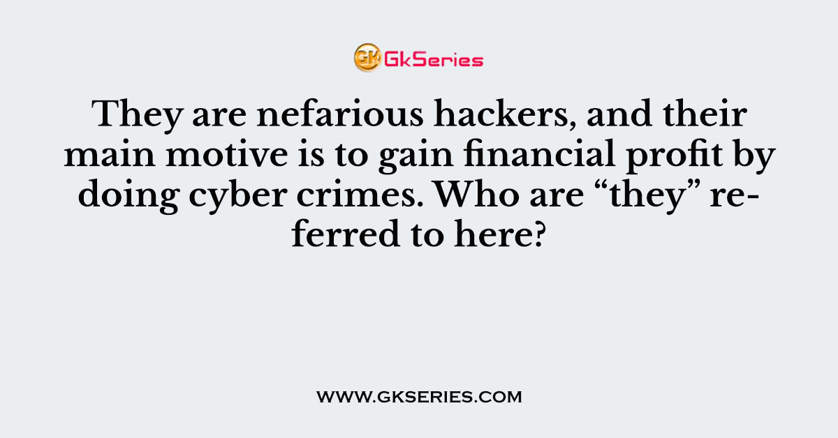 Q. They are nefarious hackers, and their main motive is to gain financial profit by doing cyber crimes. Who are “they” referred to here?