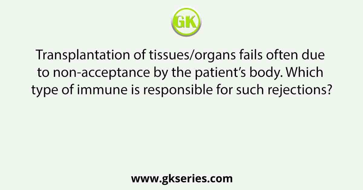 Transplantation of tissues/organs fails often due to non-acceptance by the patient’s body. Which type of immune is responsible for such rejections?