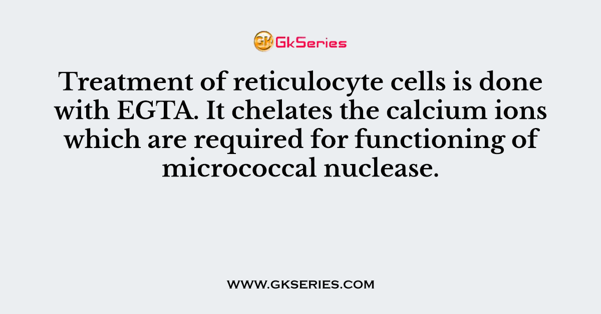 Q. Treatment of reticulocyte cells is done with EGTA. It chelates the calcium ions which are required for functioning of micrococcal nuclease.