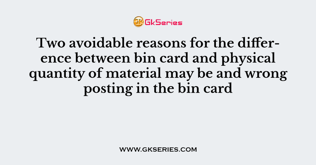 Q. Two avoidable reasons for the difference between bin card and physical quantity of material may be and wrong posting in the bin card.