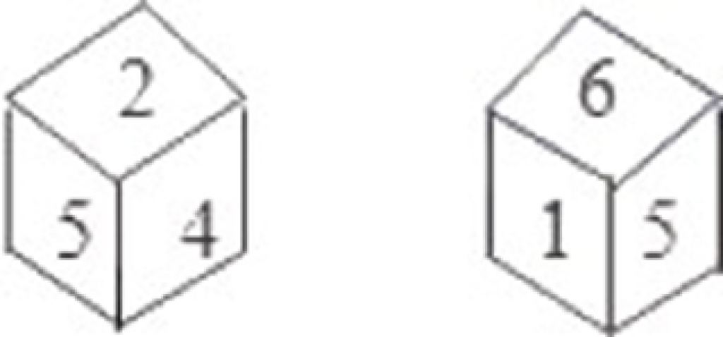 Two positions of the same dice are given. Which number will be at the top if ‘6’ is at the bottom?