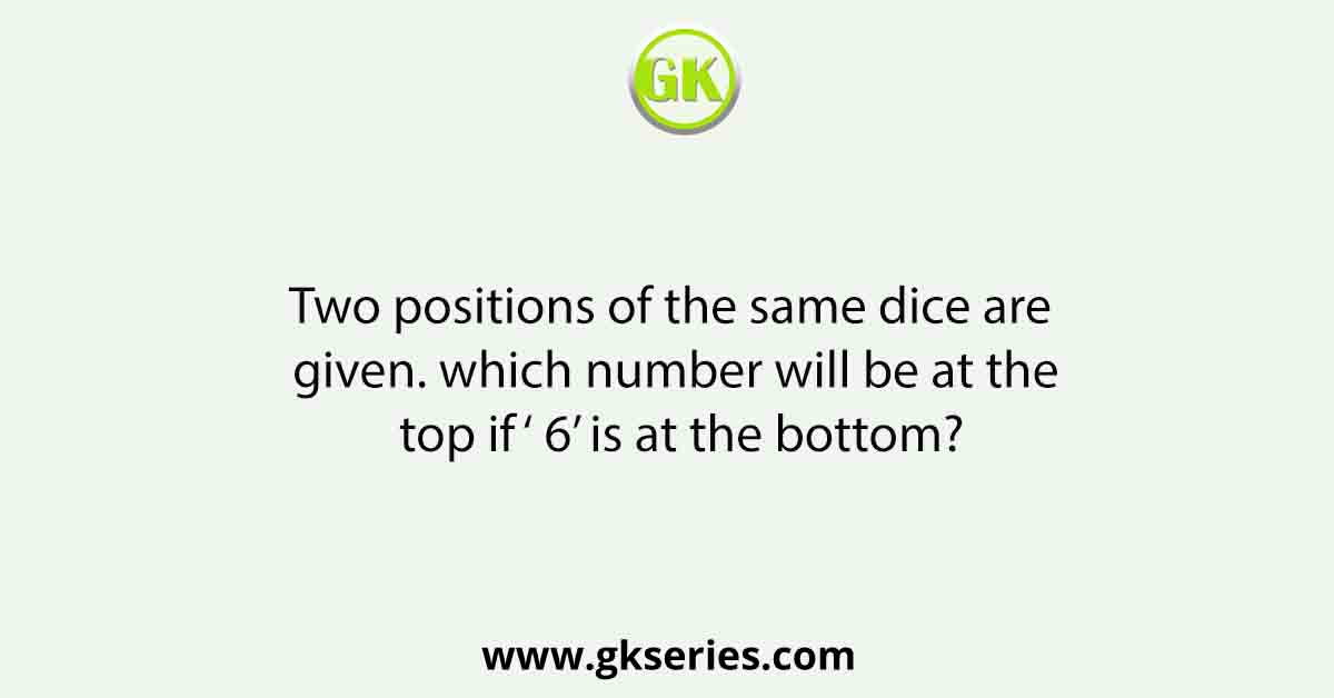 Two positions of the same dice are given. which number will be at the top if ‘ 6’ is at the bottom?