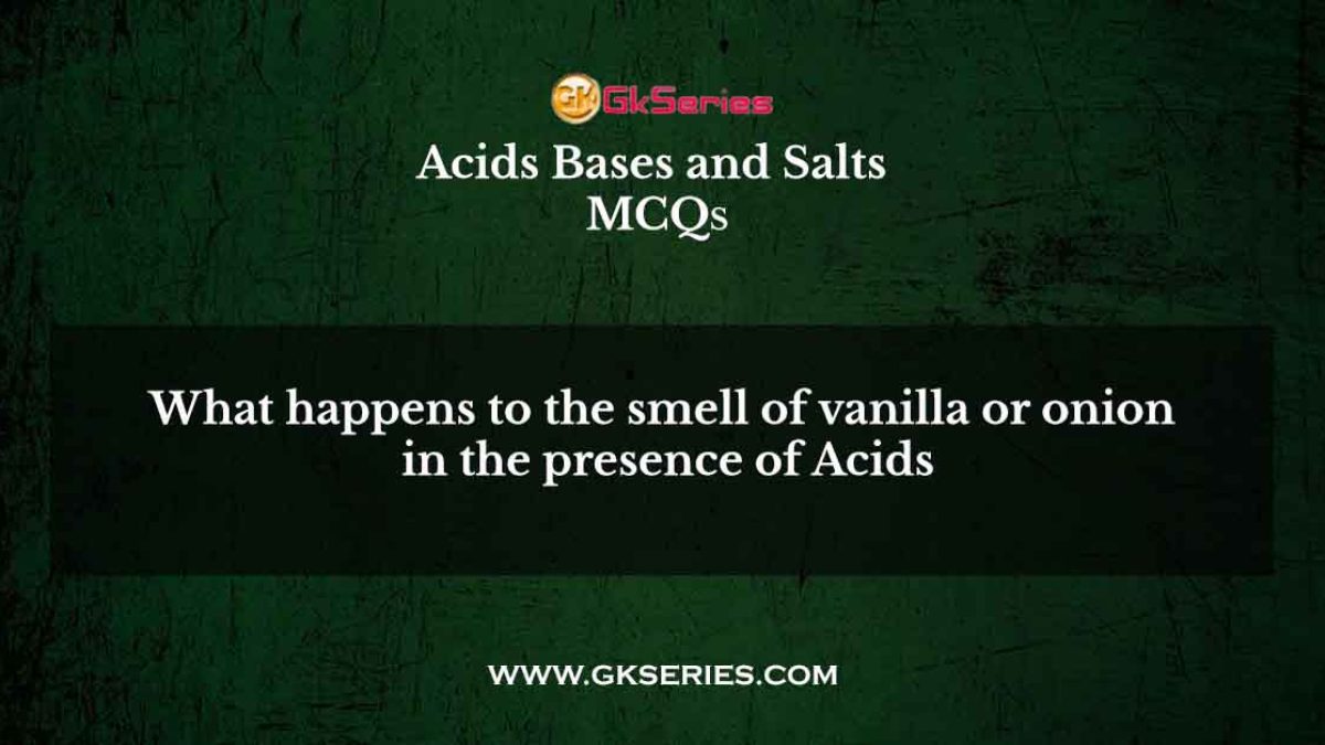 What happens to the smell of vanilla or onion in the presence of Acids? HomeAcids Bases and Salts MCQsWhat happens to the smell of vanilla or onion in the presence of Acids?Q. What happens to the smell of vanilla or onion in the presence of Acids?Smell increasesSmell vanishesNo changeA small increase in smellAnswer: A small increase in smell