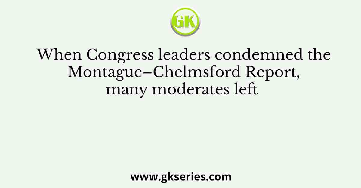 When Congress leaders condemned the Montague–Chelmsford Report, many moderates left