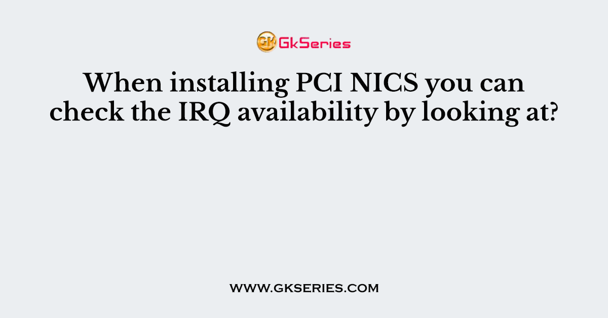Q. When installing PCI NICS you can check the IRQ availability by looking at?