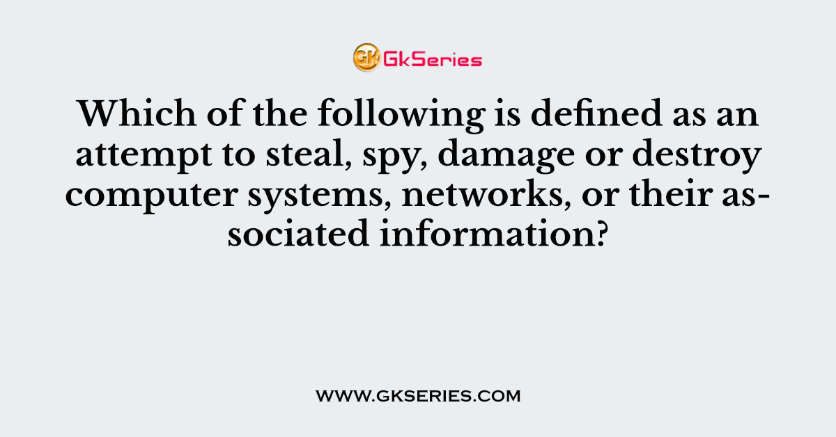 Q. Which of the following is defined as an attempt to steal, spy, damage or destroy computer systems, networks, or their associated information?