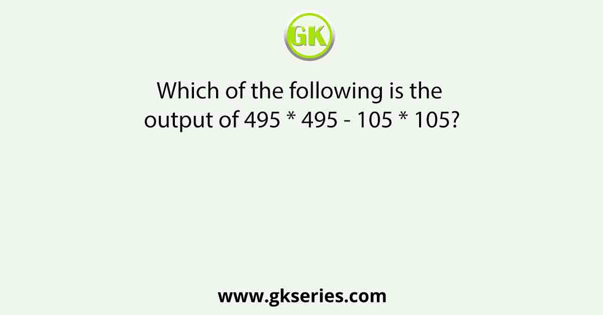 | Question | Which of the following is the output of 495 * 495 – 105 * 105? | |